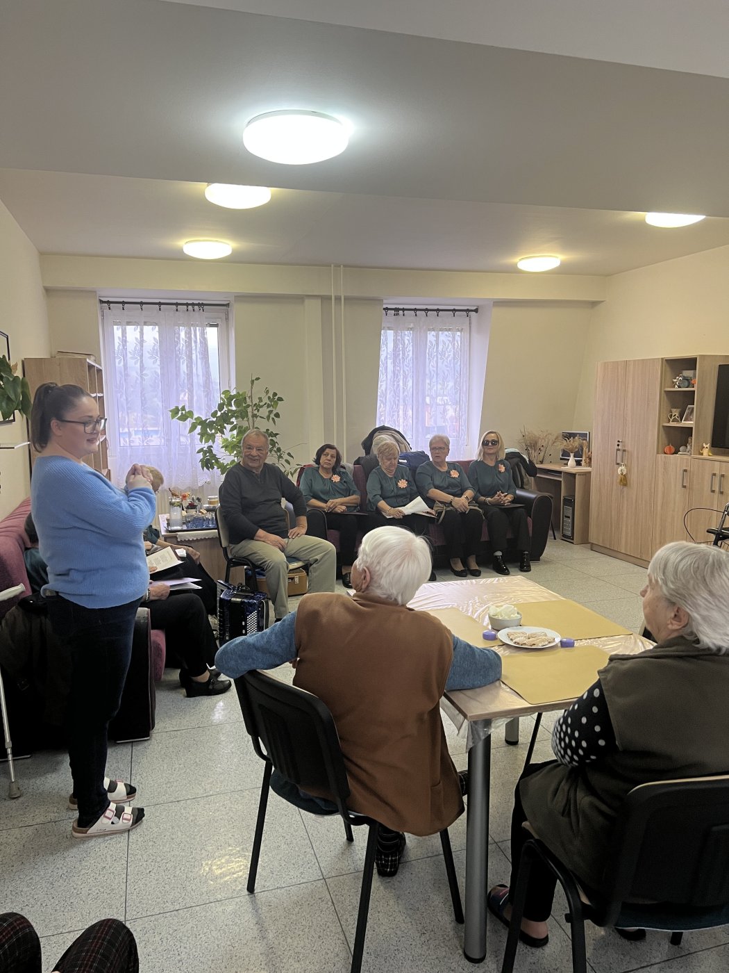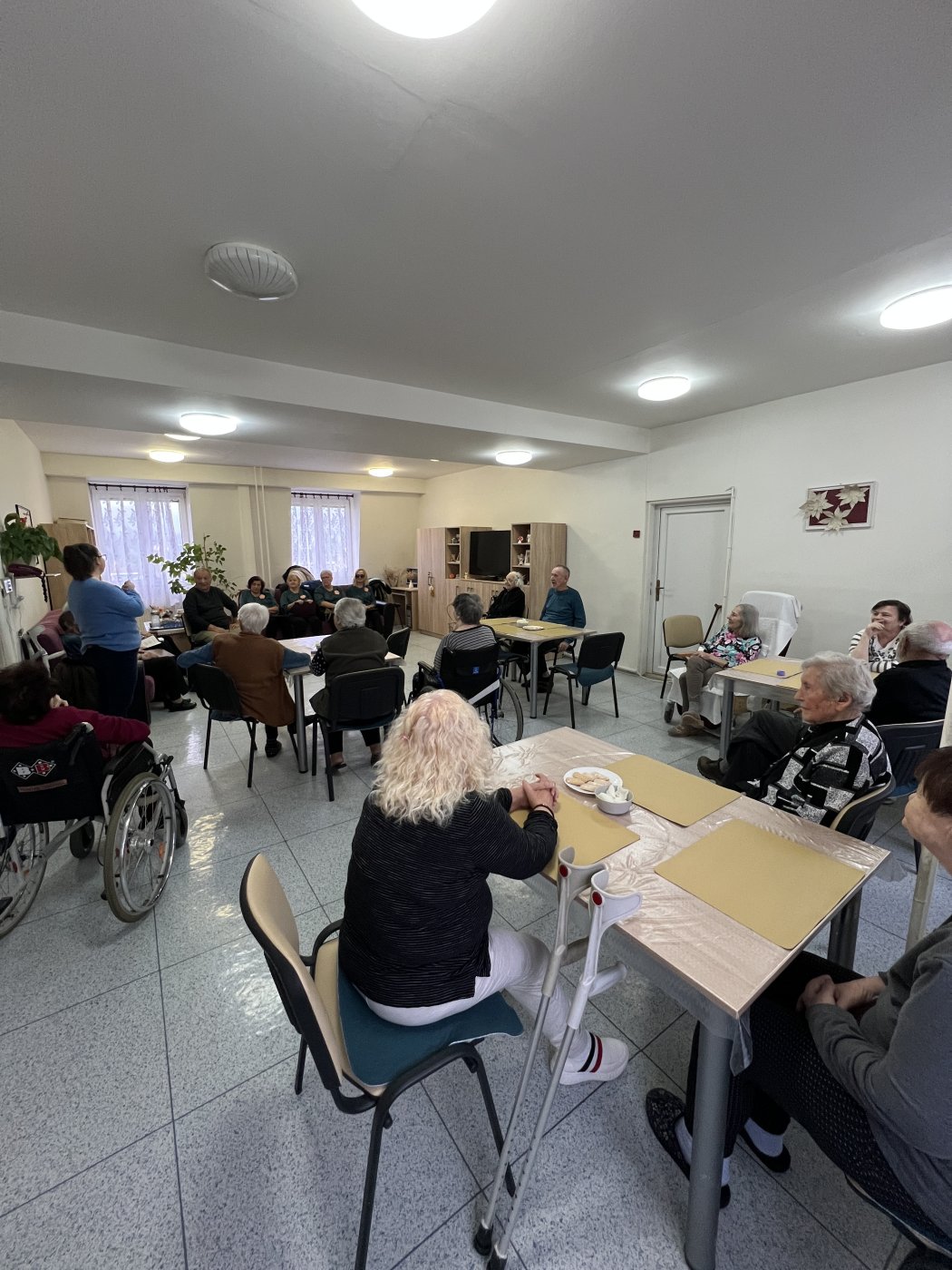 Mesiac október je tradične venovaný úcte k starším – a toto krásne posolstvo ožilo v našom zariadení vďaka mimoriadne srdečnej a hudobnej návšteve. Našimi hviezdami dopoludnia boli úžasní seniori z Klubu seniorov Hnúšťa, ktorí k nám opäť zavítali, aby svojim talentom a energiou pohladili duše. S láskou a precíznosťou si pre nás pripravili rozmanitý program hudobných a speváckych vystúpení. Od ľudových piesní, ktoré evokujú spomienky na mladosť, až po melódie, ktoré rozprúdili krv v žilách, vytvorili atmosféru plnú radosti a optimizmu. Čo však urobilo toto stretnutie skutočne nezabudnuteľným, bola spontánna a úprimná radosť našich prijímateľov. Pri počúvaní známych tónov sa rýchlo pridali k spevu, niektorí si podupkávali do rytmu. Ich vystúpenie nebolo len koncertom, bolo dôkazom, že vek je len číslo a že energia, vášeň a chuť žiť sa prenášajú z človeka na človeka bez ohľadu na roky.